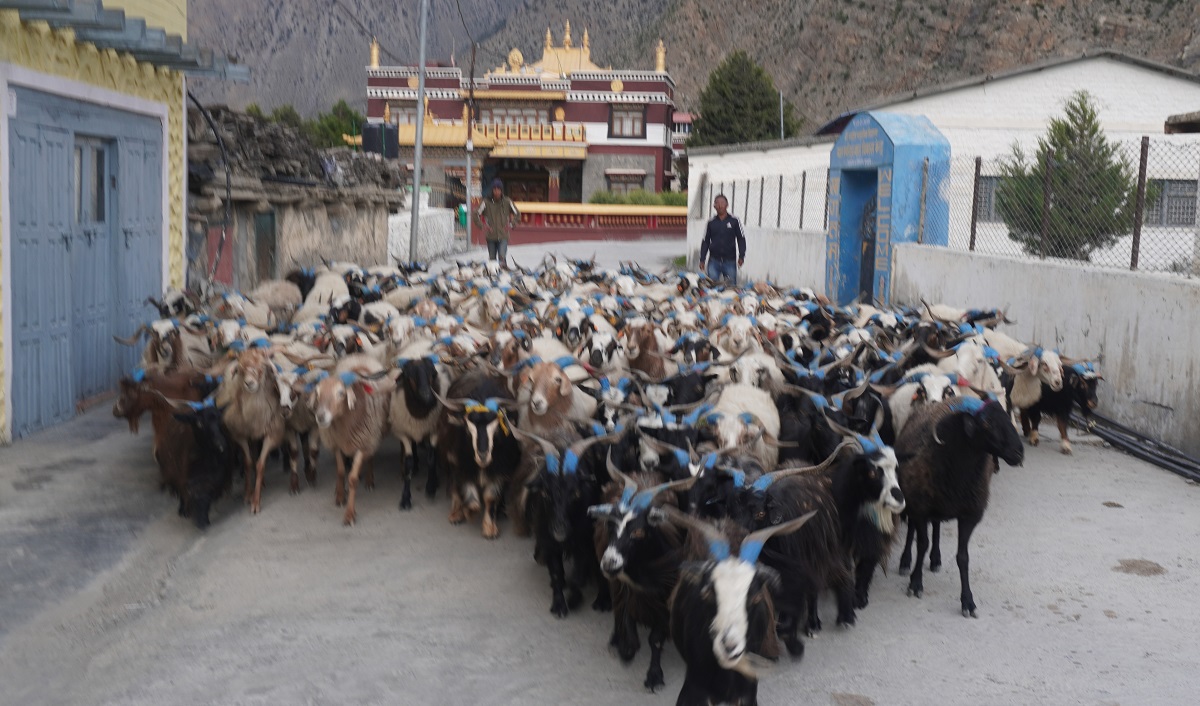 मुस्ताङ। आसन्न दसैँ नजिकिँदै गर्दा डोल्पा र जुम्लाका भेडाच्याङ्ग्रा मुस्ताङ झारिएको छ।