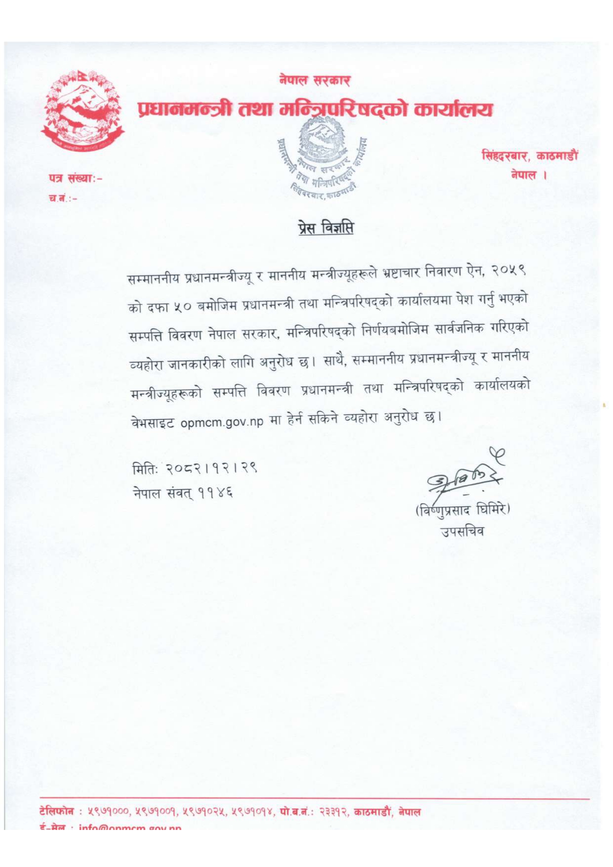 आइतबार प्रधानमन्त्री तथा मन्त्रिपरिषद् कार्यालयले प्रधानमन्त्री बालेन्द्र शाह (बालेन) सहित मन्त्रीहरूको सम्पत्ति विवरण सार्वजनिक गरेको हो ।