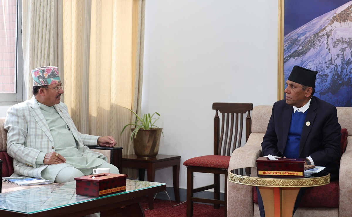 काठमाडौँ। निर्वाचन आयोगका कार्यवाहक प्रमुख निर्वाचन आयुक्त रामप्रसाद भण्डारीले राष्ट्रियसभाका अध्यक्ष नारायणप्रसाद दाहालसँग भेट गरेका छन्।