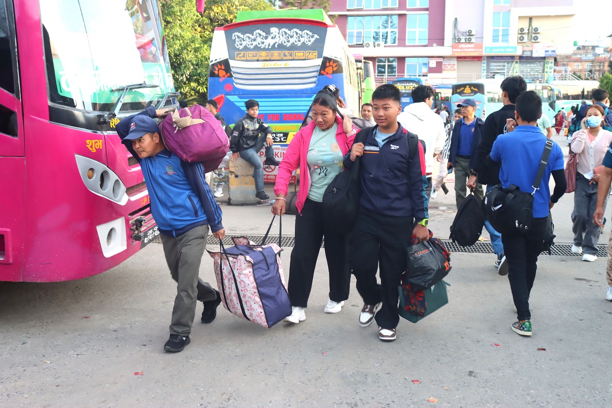 काठमाडाैं । नेपालीहरुकाे ठूलाे चाड दसैँमा घर फर्किने यात्रुका कारण काठमाडाैँका विभिन्न बस स्टेशनमा भिडभाड छ । गाेंगबु स्थित नयाँ बसपार्कमा विषेश भिड हुन पुगेकाे छ ।