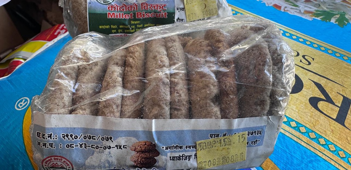 यसअघि धवलागिरि गाउँपालिका–७ ताकममा धवलागिरि बेकरी, क्याफे एण्ड एग्रो मार्टका सञ्चालक अनिल भण्डारीले कोदाको पीठो प्रशोधन गरी बिस्कुट उत्पादन गरेर बिक्री गर्दै आएका छन् ।