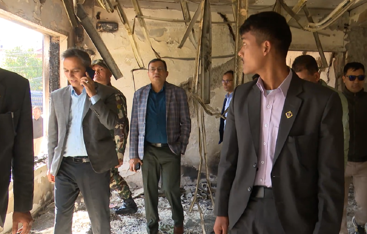 काठमाडौँ। गृहमन्त्री ओमप्रकाश अर्यालले पूर्वराष्ट्रपति विद्यादेवी भण्डारीको काठमाडौँको चपलीस्थित क्षतिग्रस्त घरको अवलोकन गरेका छन्।