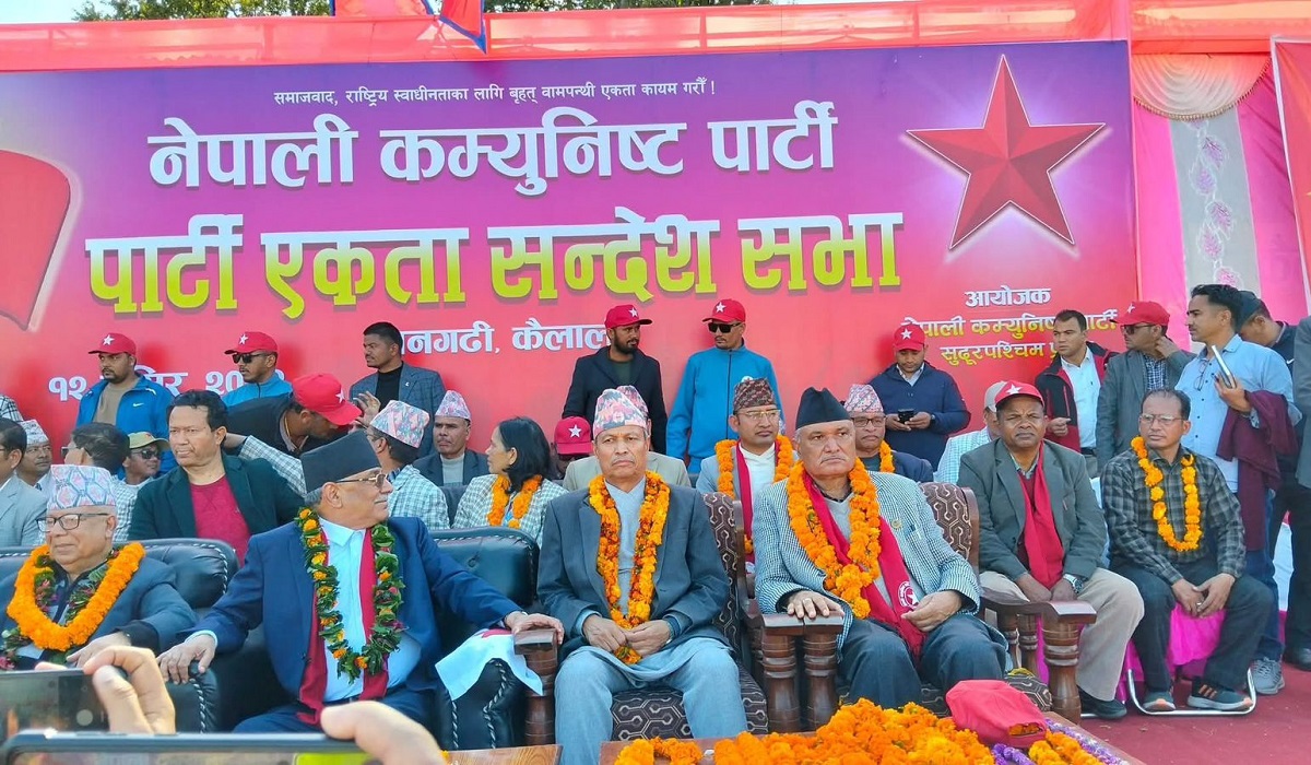 काठमाडौँ। धनगढीमा नेपाली कम्युनिस्ट पार्टीको एकता सन्देश सभा सुरु भएको छ।