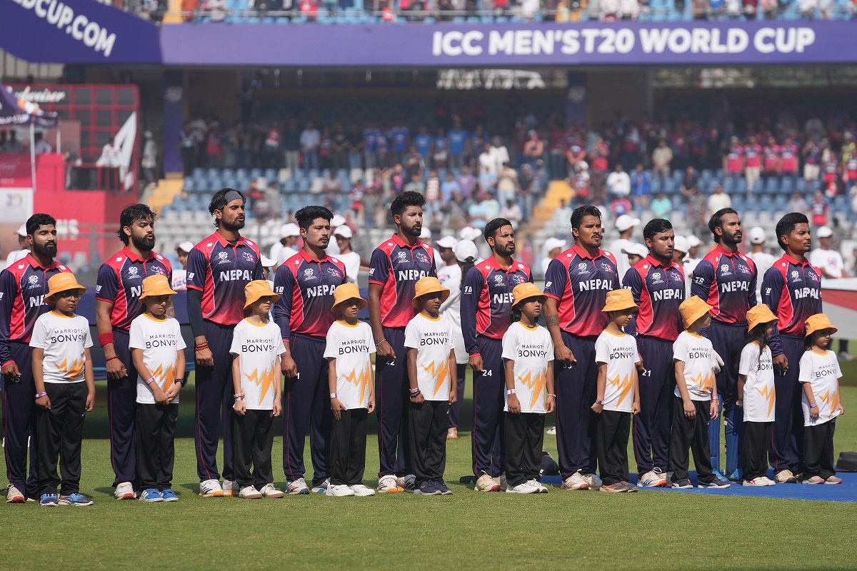 पहिलोपटक इंग्ल्यान्डसँग नेपालले खेल्न लागेको हो। नेपालले समूह चरणका आफ्ना सबै खेल वानखेडे स्टेडियममा नै खेल्नेछ। ग्रुप सीमा इंग्ल्यान्डसहित नेपालले वेस्ट इन्डिज, स्कटल्यान्ड र इटालीसँग प्रतिस्पर्धा गर्नेछ।
