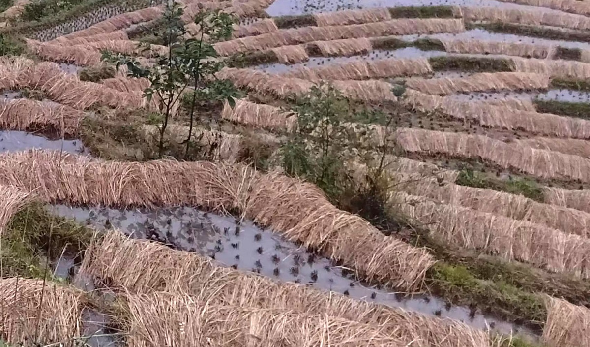 तम्घास। हालैको बेमौसमी वर्षाले गुल्मीमा रु पाँच करोडको धानबाली नष्ट भएको छ।