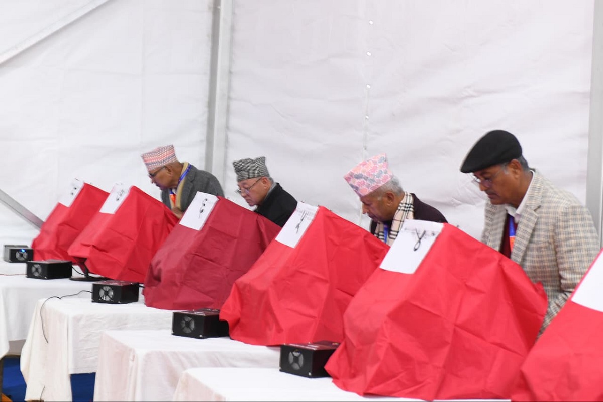 केन्द्रीय निर्वाचन आयोगका उपाध्यक्ष सानुराज पोखरेलका अनुसार अध्यक्ष पदका उम्मेदवारद्वय अध्यक्ष केपी शर्मा ओली र ईश्वर पोखरेलले मतदान गर्नुभएको छ ।