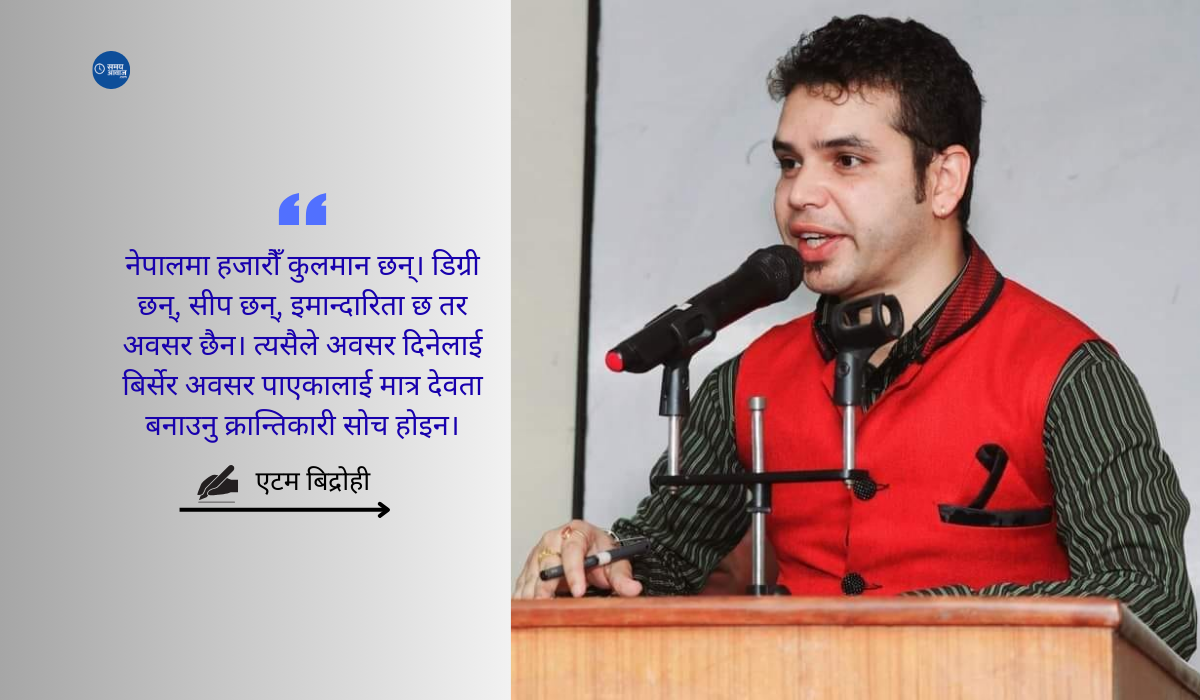 नेपालमा हजारौँ कुलमान छन्। डिग्री छन्, सीप छन्, इमान्दारिता छ तर अवसर छैन। त्यसैले अवसर दिनेलाई बिर्सेर अवसर पाएकालाई मात्र देवता बनाउनु क्रान्तिकारी सोच होइन। यो त राजनीतिक कृतघ्नता हो निसानीजी।