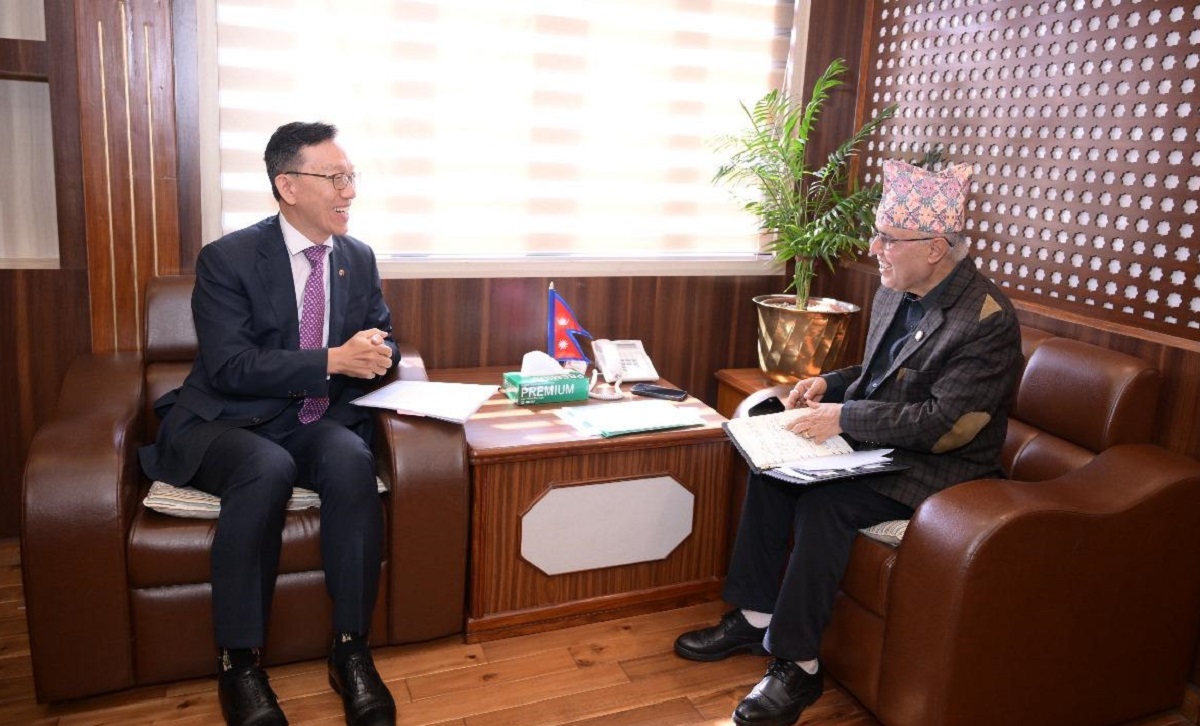 काठमाडौँ। अर्थमन्त्री रामेश्वरप्रसाद खनालसँग नेपालका लागि कोरिया गणतन्त्रका राजदूत पार्क ते यङले शिष्टाचार भेट गरेका छन्।