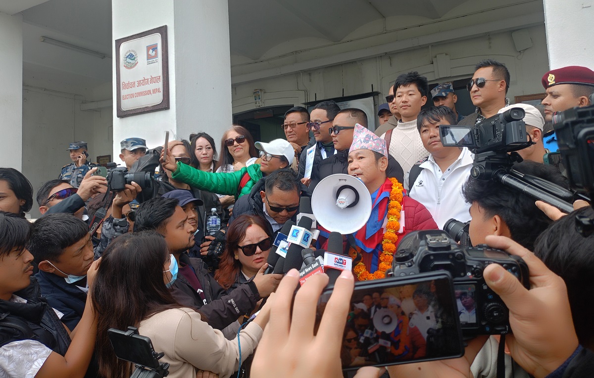 दल दर्ताको प्रमाणपत्र प्राप्त गरेपछि साम्पाङले भने, ‘हामीले २८ सदस्यीय कार्यसमिति बनाएका छौँ, हामी देशका लागि काम गरेर देखाउँछौँ। देश र जनताप्रति हामी इमानदार छौँ।’
