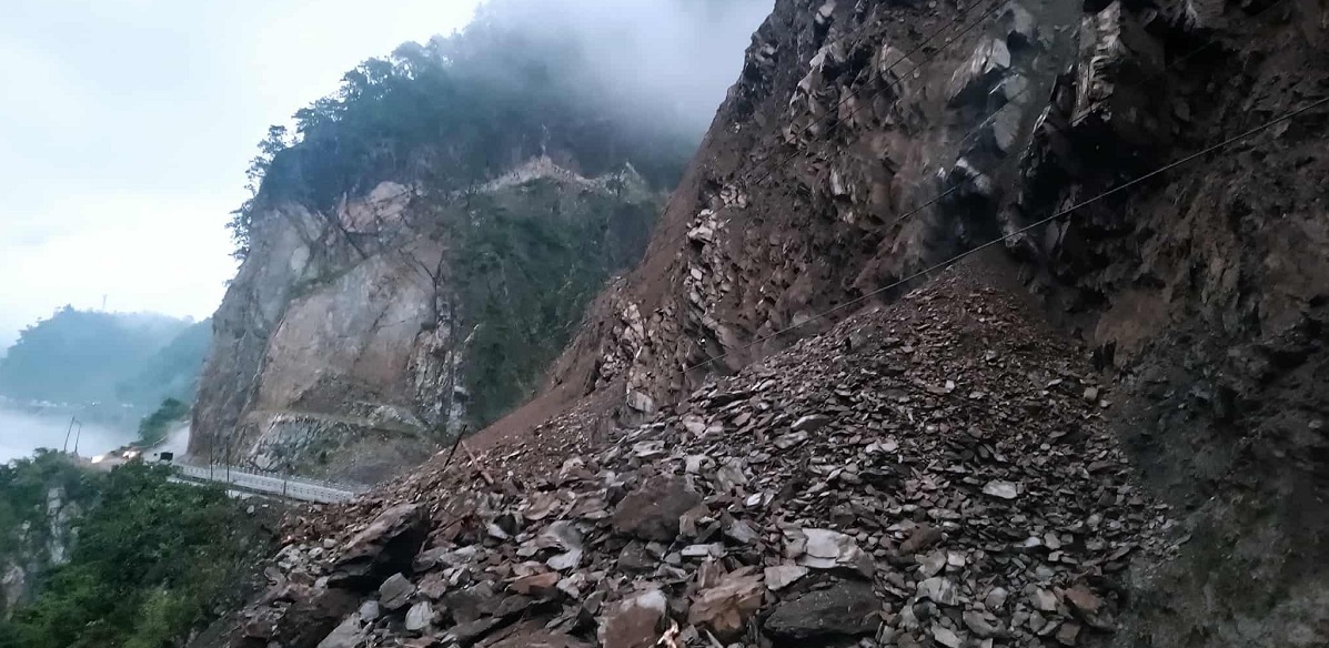 चितवन । नारायणगढ–मुग्लिन सडकखण्डको तुइन खोलामा ठूलो पहिरो खसेको छ । शुक्रबार साँझ ६ः०० बजेदेखि निरन्तर खसेको पहिरोले १०० मिटर सडक ढाकेको छ ।