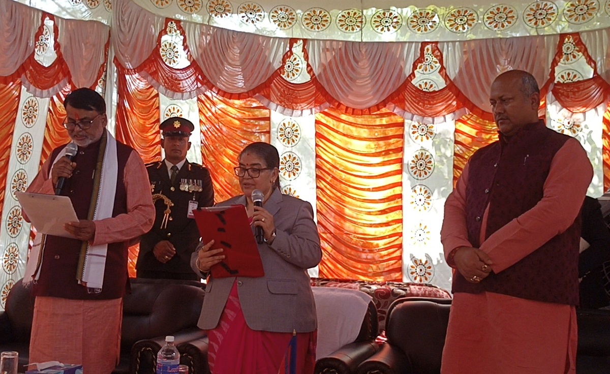 आज जनकपुरधामस्थित प्रदेश प्रमुखको कार्यालयमा आयोजित एक समारोहबीच मुख्यमन्त्रीमा नियुक्त भएका लोकतान्त्रिक समाजवादी पार्टी (लोसपा) नेपालका प्रदेशसभा सदस्य सोनलले प्रदेश प्रमुख सुमित्रा सुवेदी भण्डारी समक्ष भोजपुरी भाषामा पद तथा गोपनीयताको शपथ लिएका हुन्।