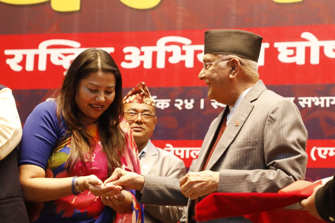 कार्यक्रममा एकीकृत समाजवादीमा लागेका नेताहरूले प्रतीकात्मक रूपमा सो पार्टीको चुनाव चिन्ह ‘कलम’ अध्यक्ष ओलीलाई बुझाएका थिए।