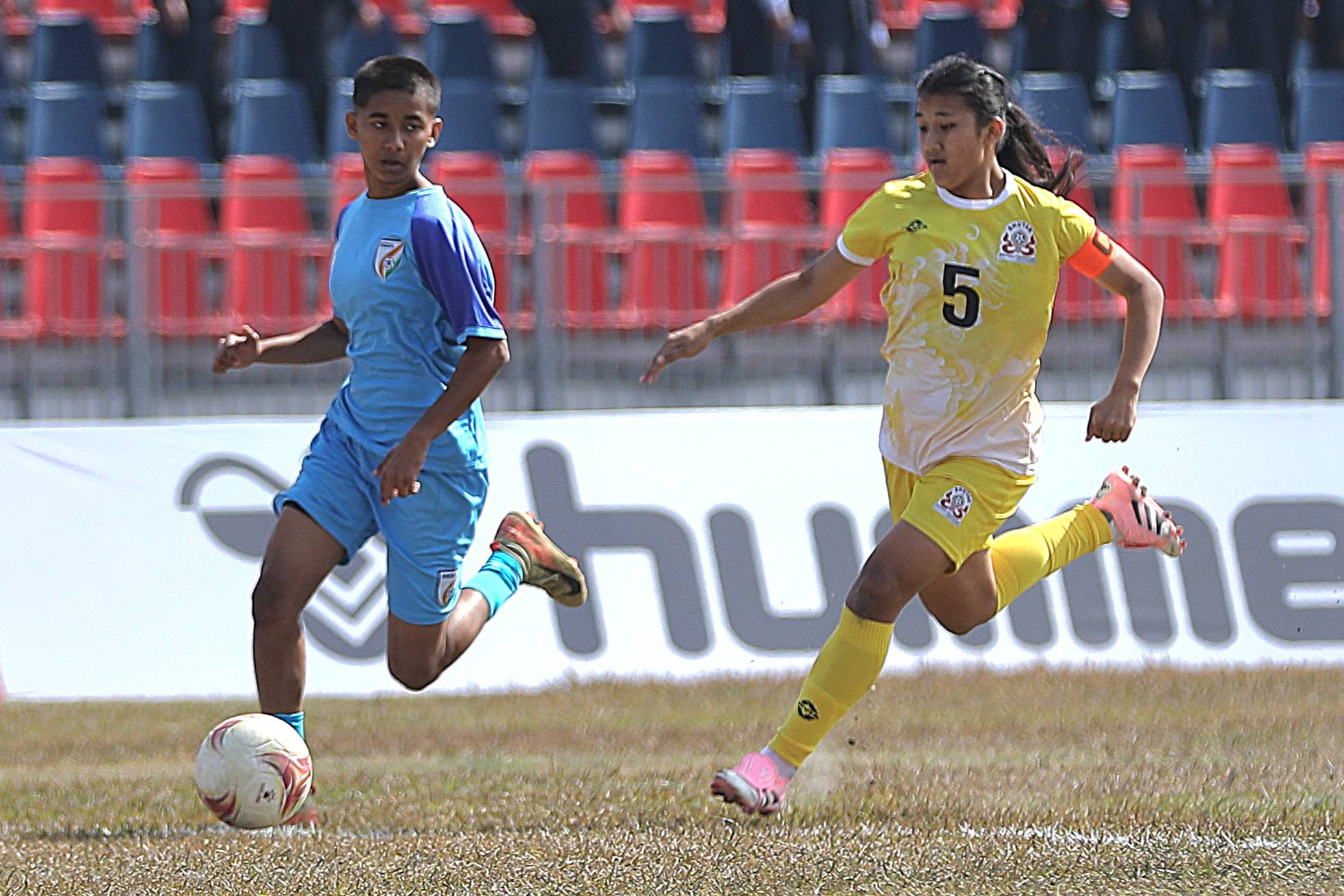 कास्की । पोखरामा जारी १९ वर्षमुनिको साफ महिला च्याम्पियनसिप फुटबल प्रतियोगिताको आजको पहिलो खेलमा भारतले भुटानलाई ८-० को फराकिलो अन्तरले पराजित गरेको छ ।
