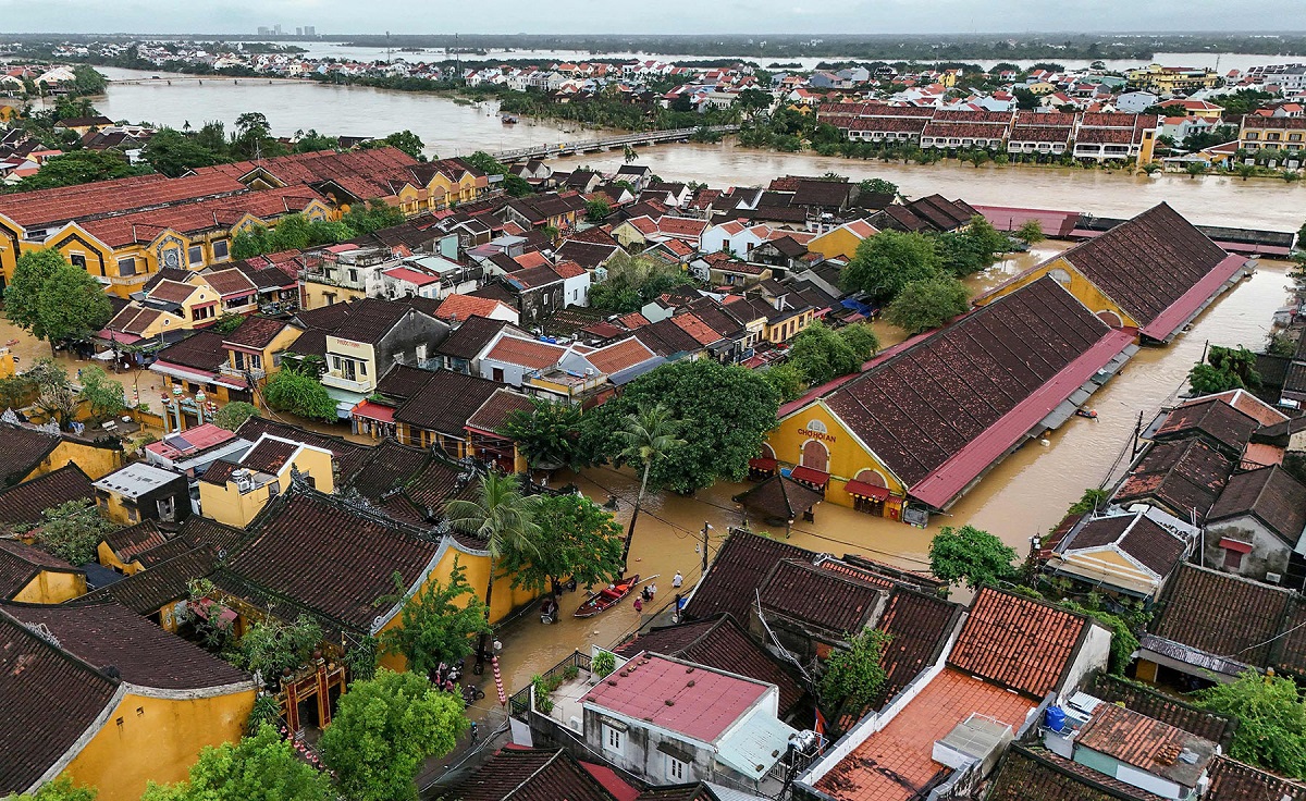 युनेस्को विश्व सम्पदा सूचीमा रहेको प्राचीन सहर होइ एन पनि कम्मर–गहिरो पानीमा डुबानमा परेको छ। स्थानीय नदी ६० वर्षयताको उच्चतम स्तरमा पुगेपछि बासिन्दाहरू काठका डुङ्गा प्रयोग गरी सहरमा यात्रा गर्न बाध्य भएका छन्।