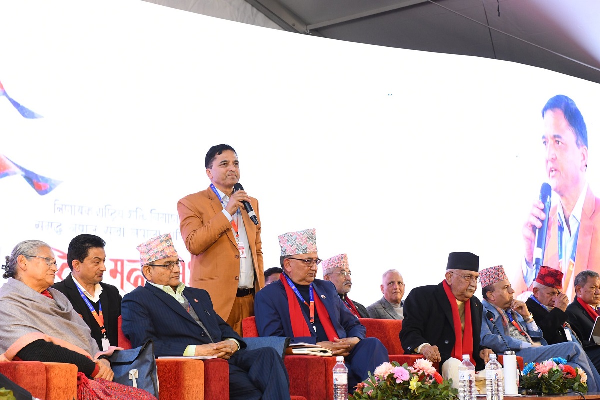 महाधिवेशनस्थल भृकुटीमण्डपमा कुरा गर्दै उनले नेतृत्वप्रति धेरै प्रश्न उठेकाले पार्टी पुनर्गठन गरेर नेतृत्व हस्तान्तरण गरेर नयाँ टीमका साथ अगाडि बढ्नुपर्ने बताए ।